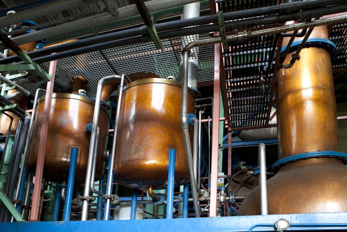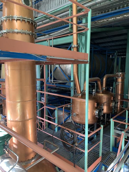 Il y a plusieurs colonnes sous-vide qui existent dans le monde, mais la notre est probablement la seule qui fonctionne selon le simple principe d’analyse / rectification créé par Coffey. De la même manière, notre pot-still est le seul alambic à double retors adapté à la distillation sous-vide. Les autres pot-stills sous vide existants sont de fabrication récente – souvent en inox – non pas des alambics de conception traditionnelle, en cuivre, adaptés au sous-vide comme le notre.