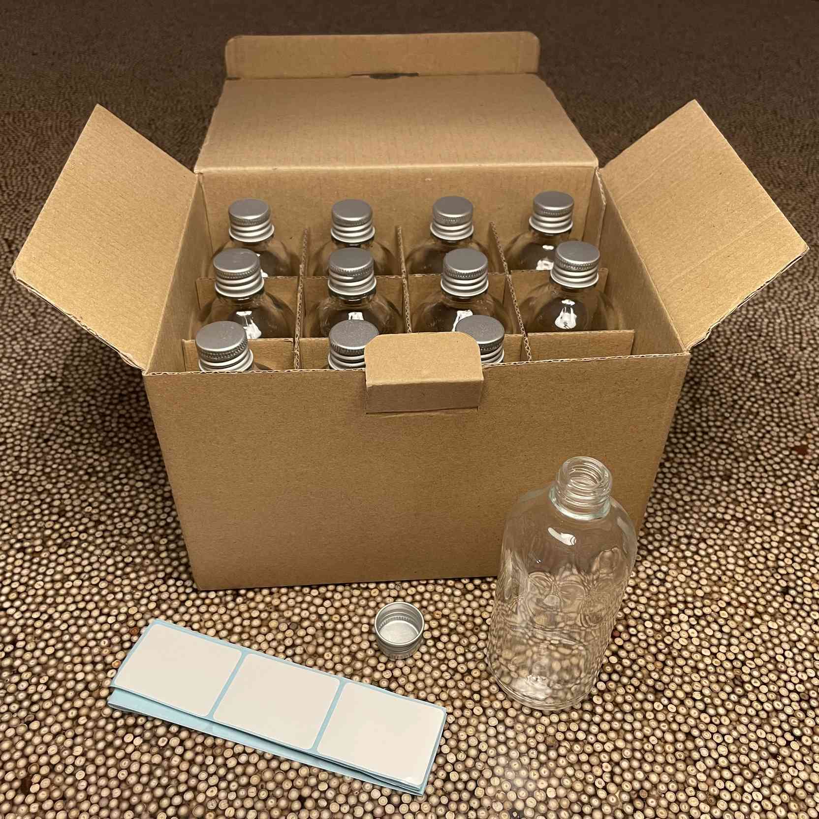 Pour réaliser vos samples vous-même et partager vos spiritueux avec votre communauté, nous vous proposons ce coffret de 12 flacons (vides) de 10 centilitres avec pour chaque flacon :