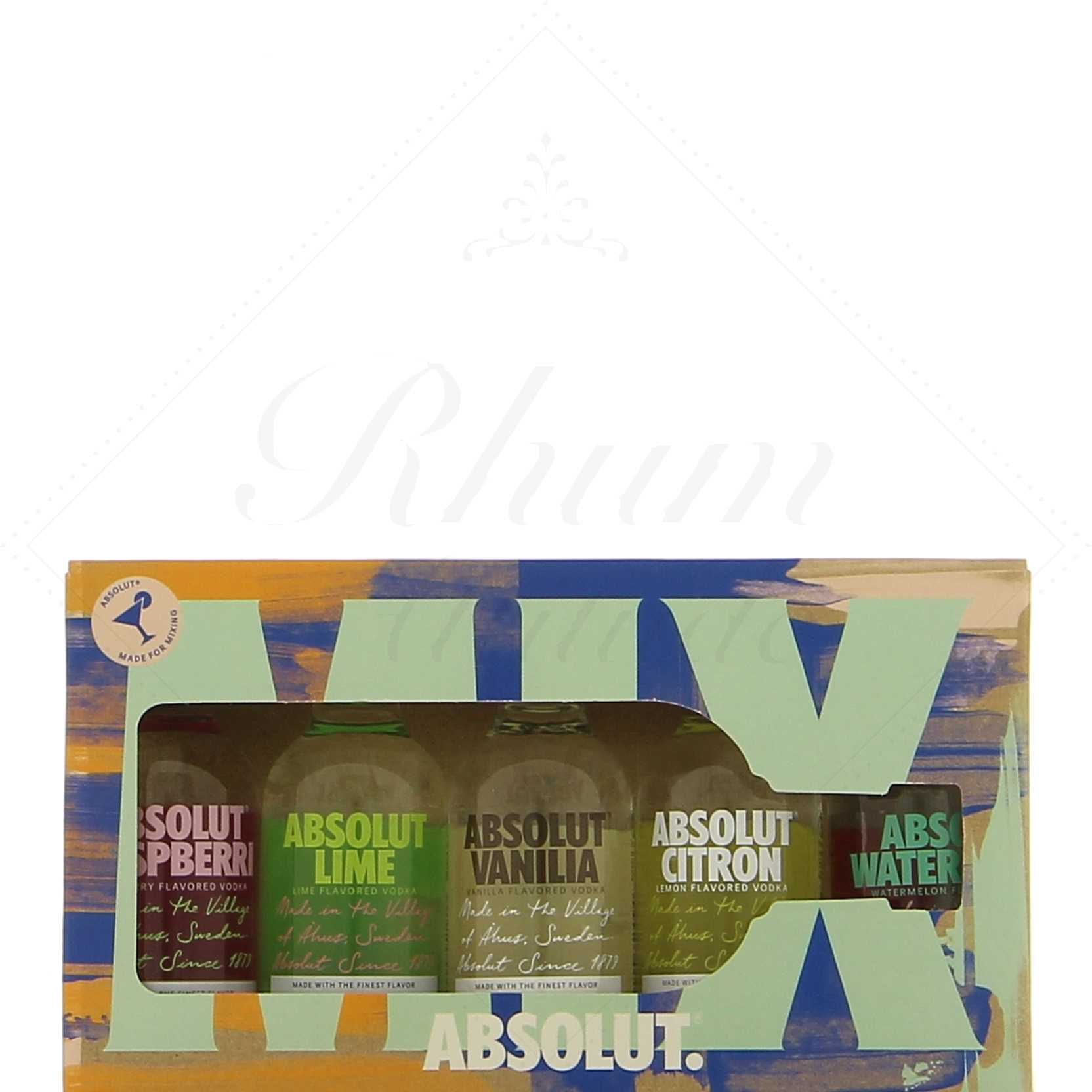 Ce mini-coffret de la marque Absolut est composé de 5 mignonnettes de 5cl chacune.