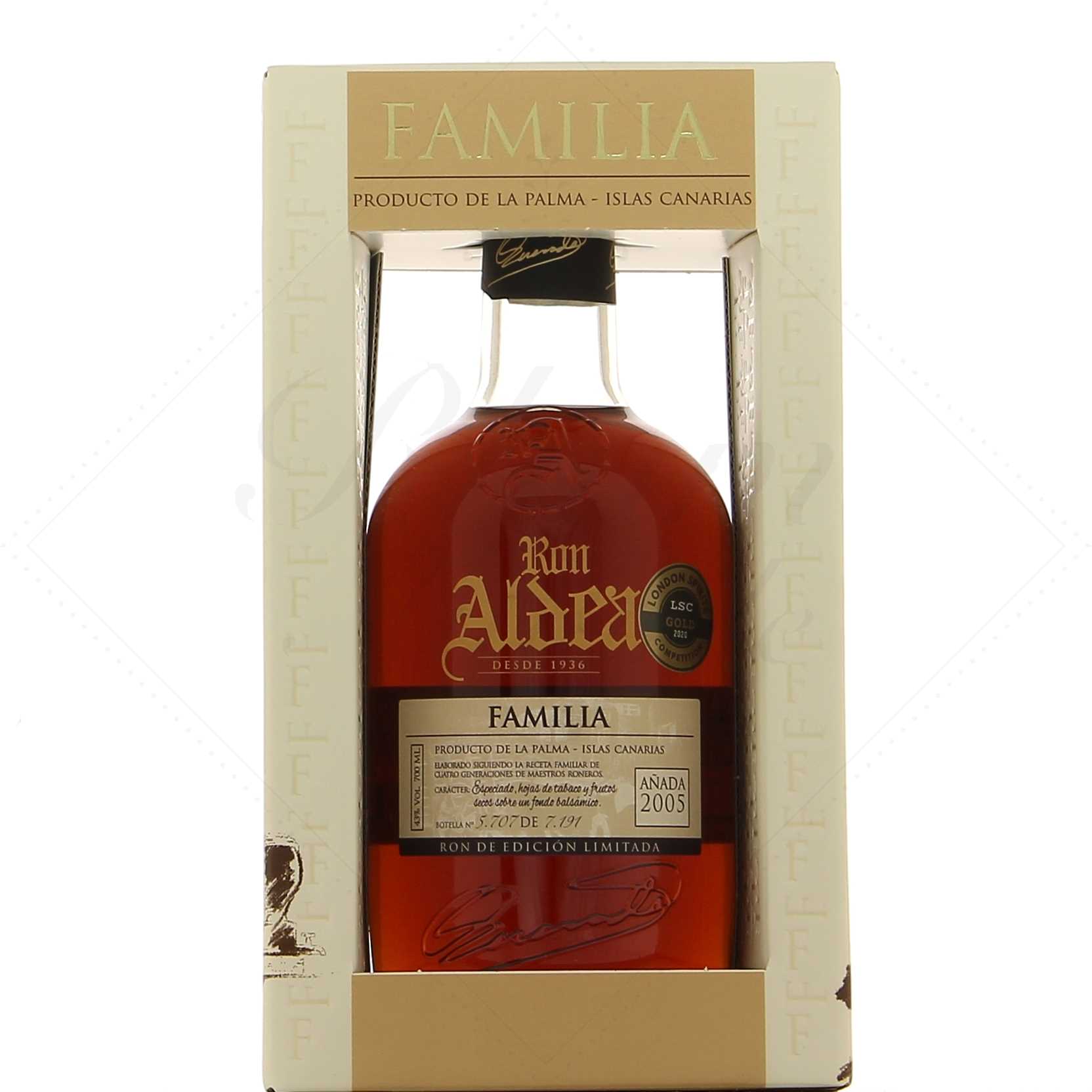 Aldea Familia 2005 est un rhum de terroir produit au cœur de l’archipel des Canaries. Sa distillation est l’œuvre de la famille Quevedo dont le domaine se situe sur l’île de la Palma.