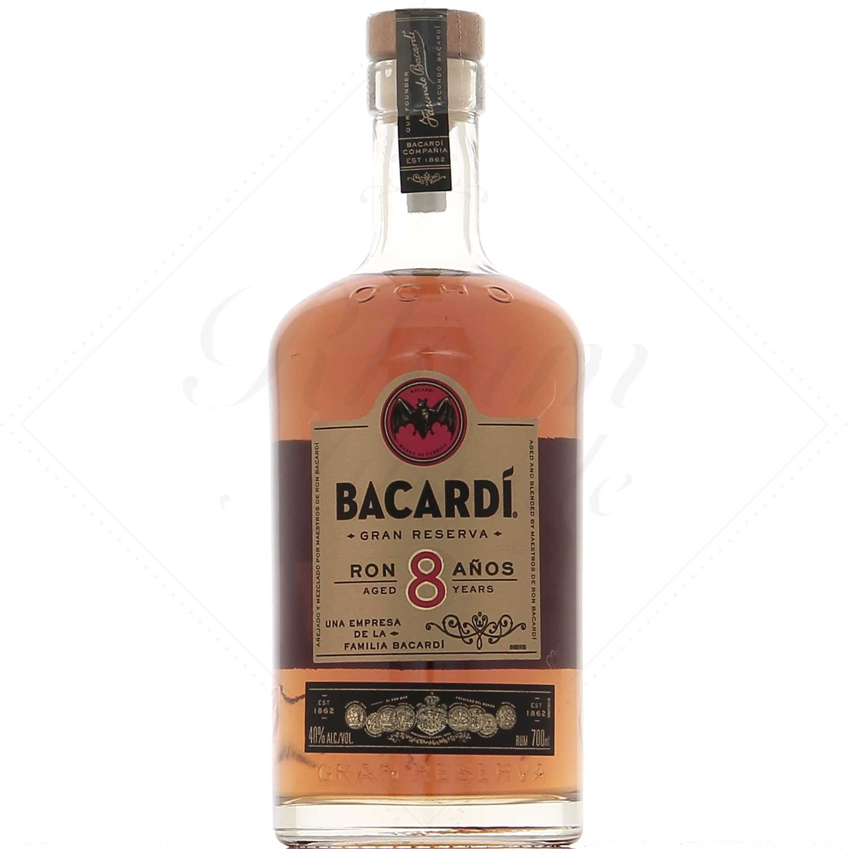 Bacardi 8 ans est ici en format 70 cl. Pour découvrir toutes ses caractéristiques et notre note de dégustation rendez-vous sur la version Bacardi 8 ans 1 litre.