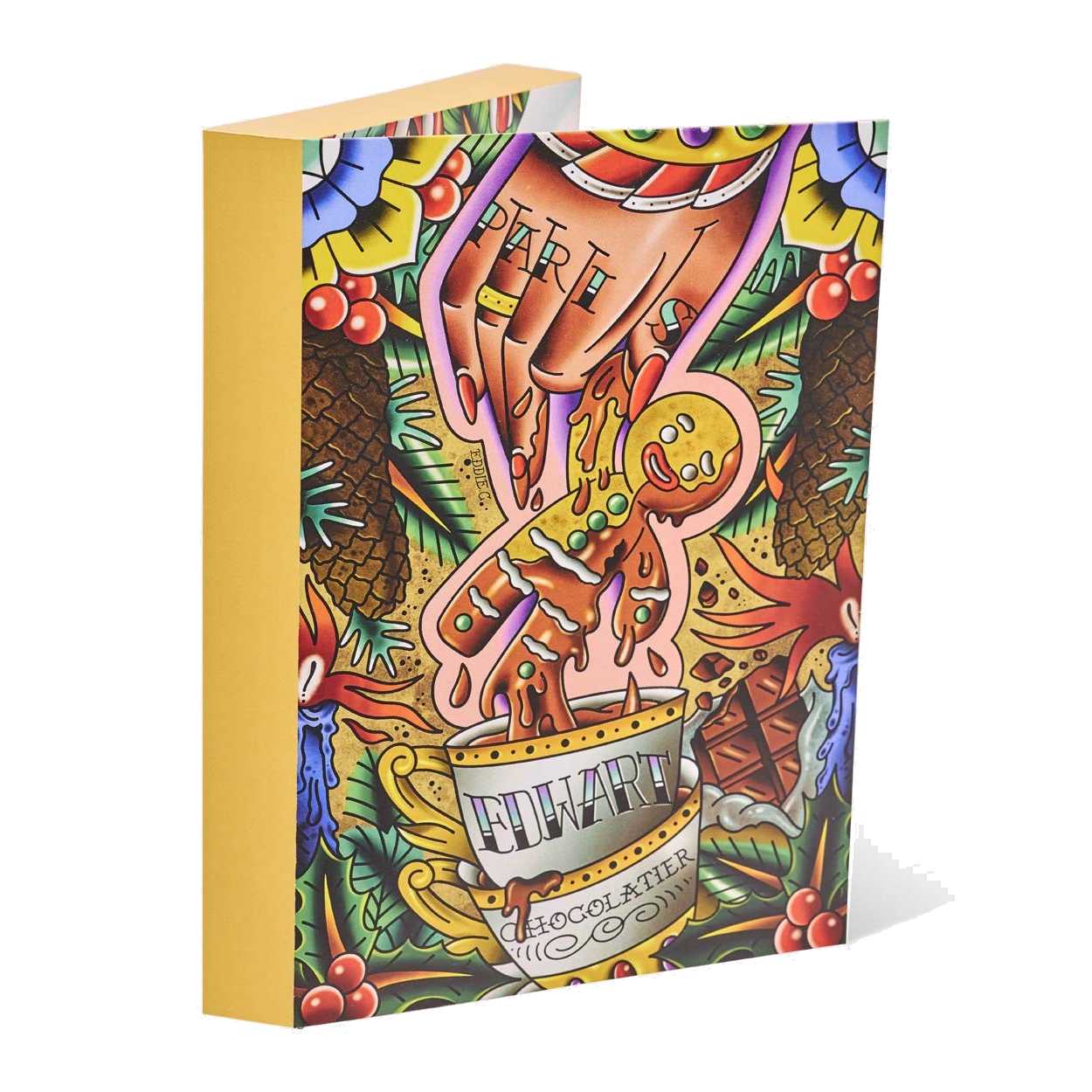 C’est l’artiste-tatoueur Eddie Czaicki qui a illustré ce coffret en mettant en scène le personnage “petit biscuit”.