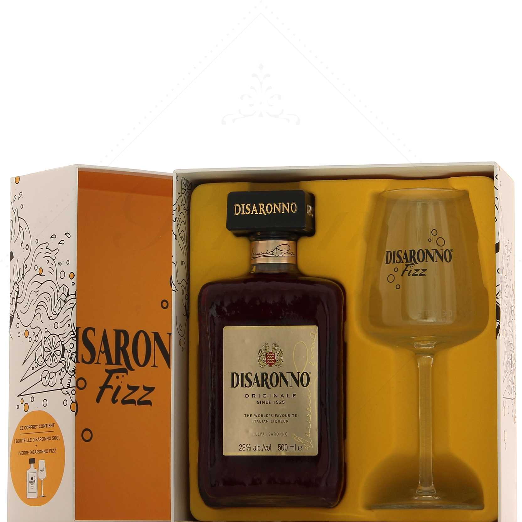 Amaretto Disaronno vous est proposé en coffret avec 1 verre adapté au cocktail Disaronno Fizz. Ce coffret ravira les amateurs de cette célèbre liqueur italienne aux amandes.