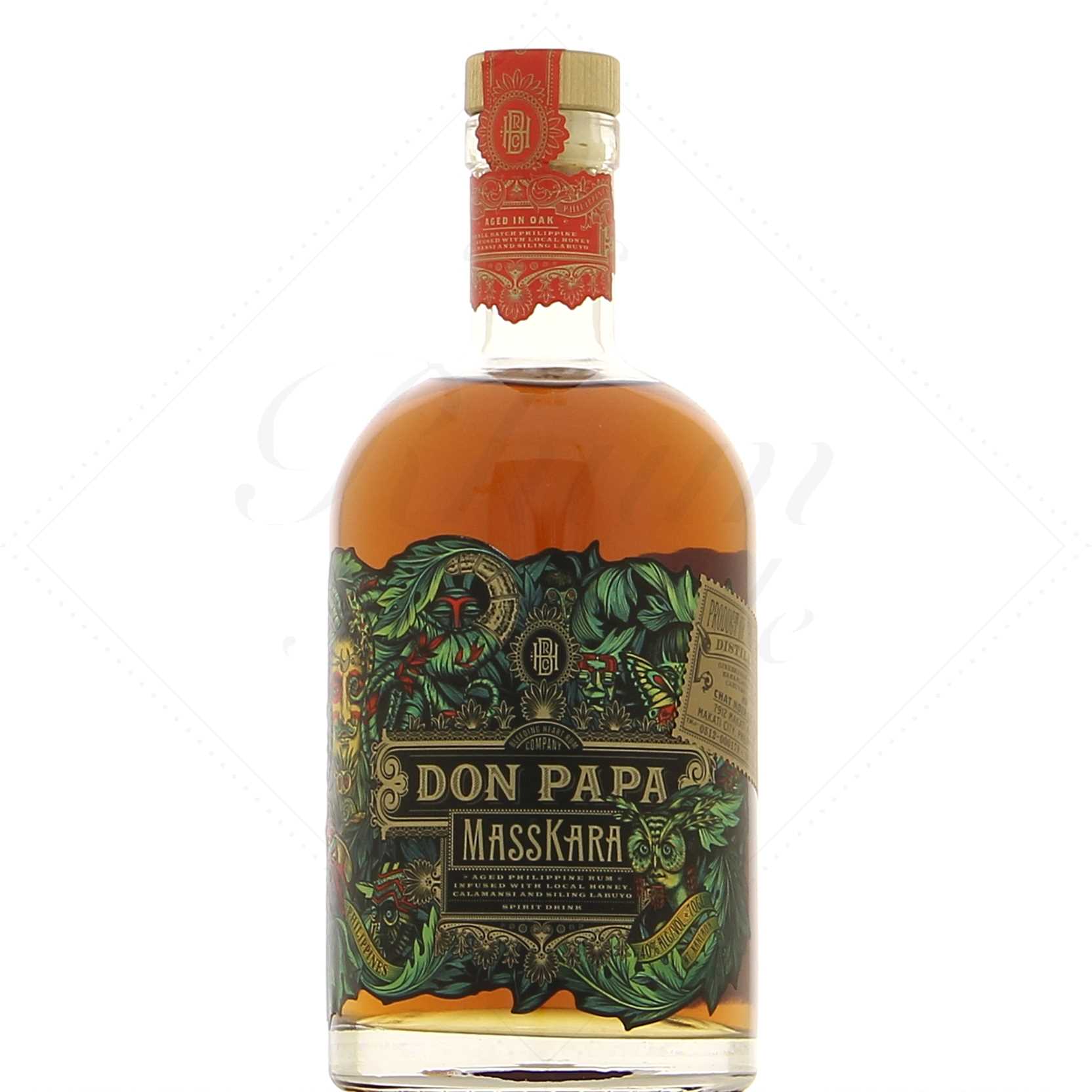 Don Papa Masskara est un rhum infusé élaboré à partir de mélasse qui provient de cannes à sucre cultivées sur l’Île de Negros, aux Philippines.