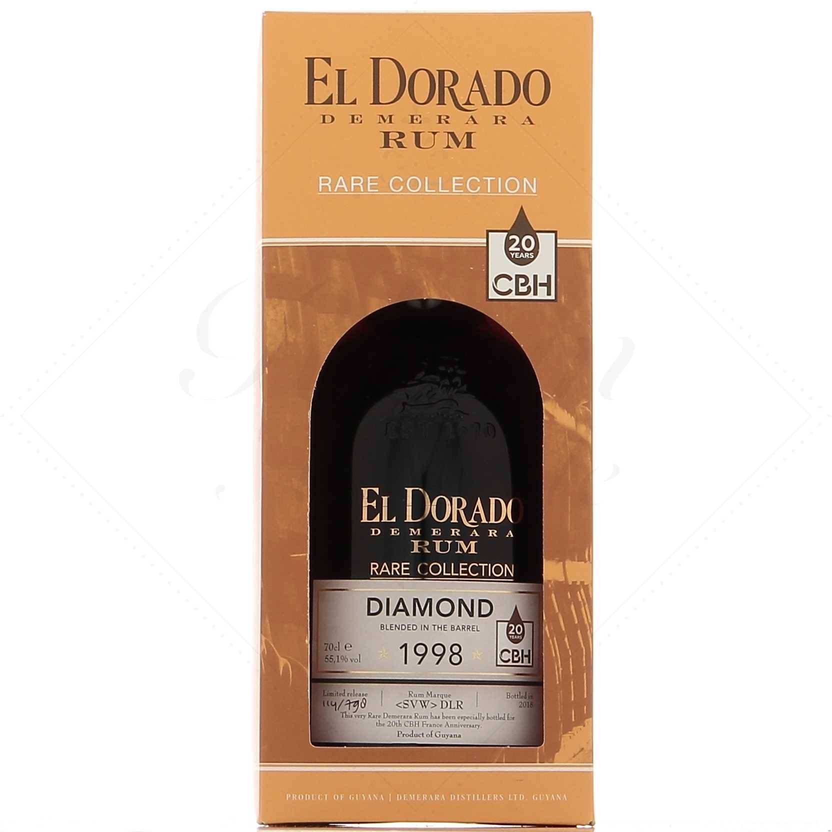 El Dorado Rare Collection Diamond 1998 provient de la grande distillerie Diamond du Guyana (Guyane britannique). Celle-ci était cependant moins grande à l’époque où ce rhum a vu le jour car les autres distilleries du pays ont depuis déménagé. Fûts et alambics ont été alors transférés chez Diamond.