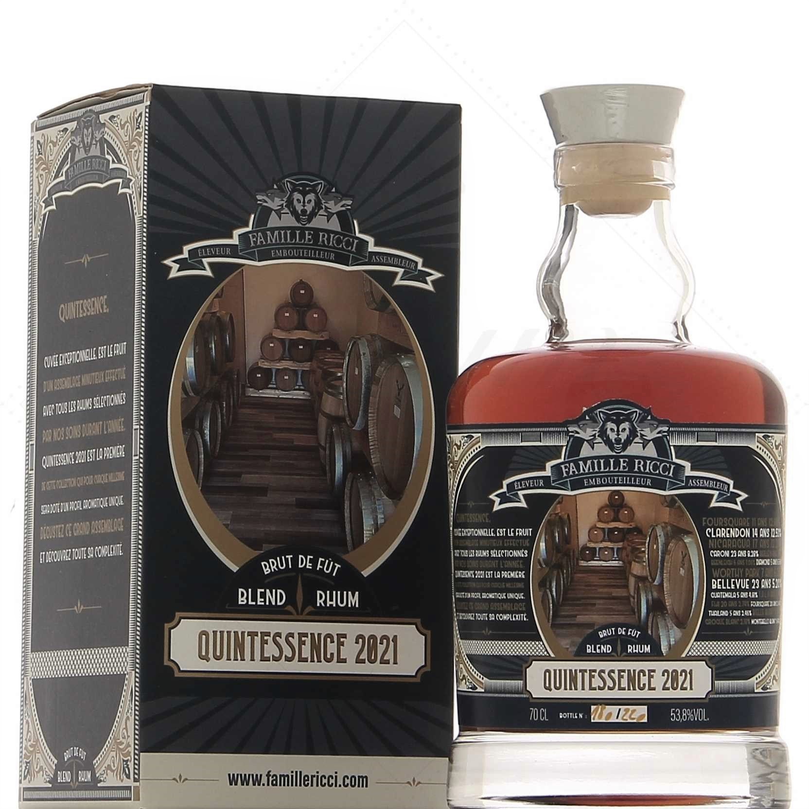Famille Ricci Quintessence est un assemblage audacieux de tous les rhums sélectionnés au cours de l’année. En 2021 pour la première de la collection, il est question de 17 références au total ! Des rhums de mélasse et des rhums pur jus de canne (agricoles) réunis avec une grande précision pour une explosion d’arômes.