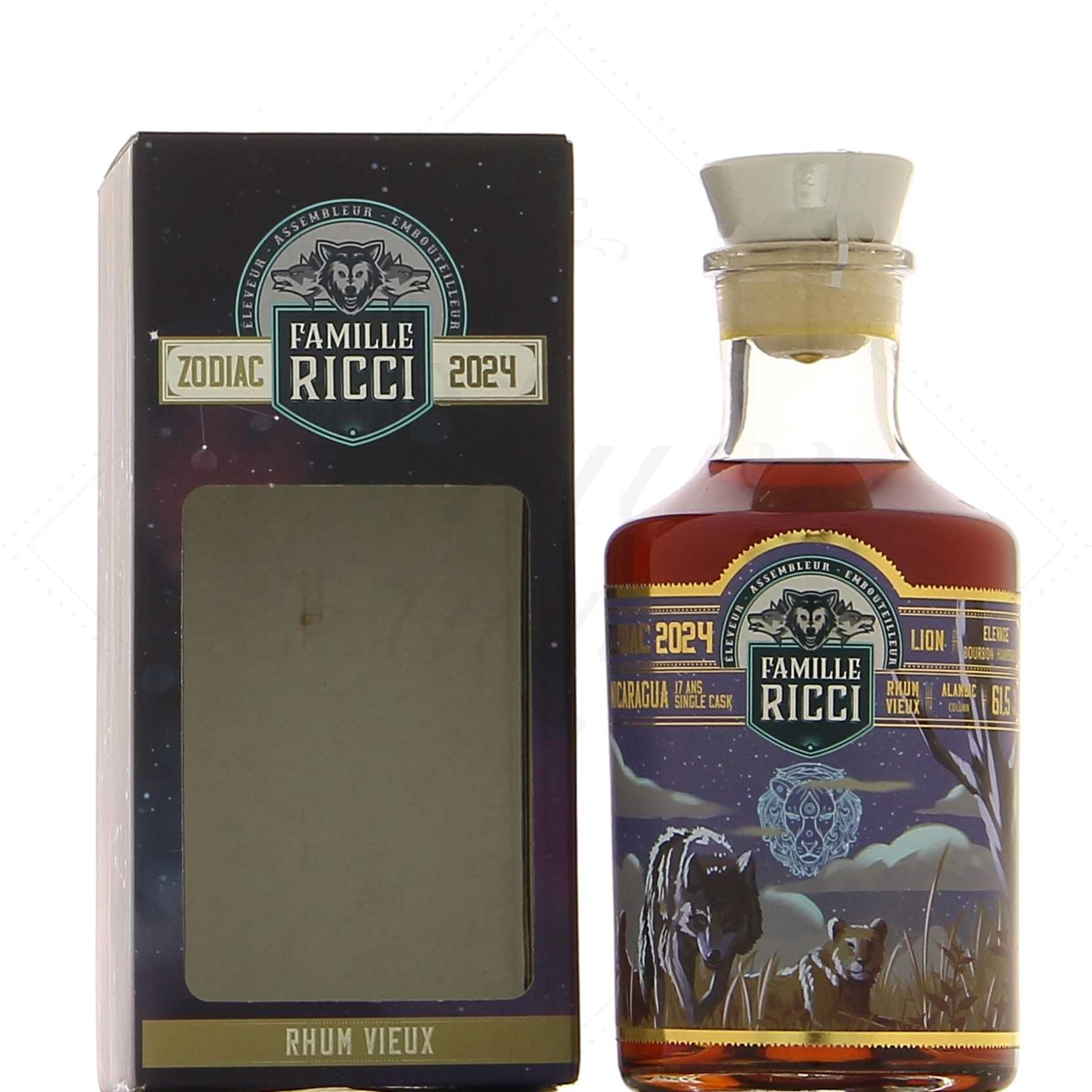Lancée en 2023, la collection Zodiac de la Famille Ricci illustre chaque signe astrologique à travers une cuvée de rhum. Le Lion dans sa version 2024 est représenté par un rhum du Nicaragua.