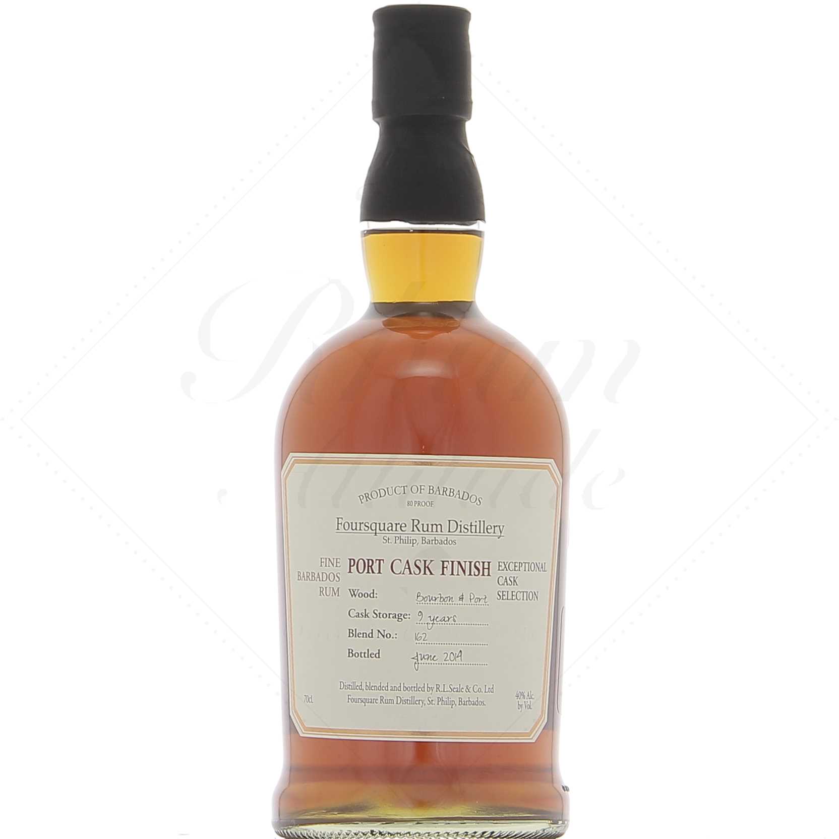 Foursquare Barbade Port cask finish 9 ans est un blend de rhums distillés chez Foursquare en colonne et en pot still. L’ensemble est d’abord mis à vieillir dans les chais de la distillerie pour une durée de 3 ans en fûts de chêne américain ayant auparavant contenu du bourbon (comme cela se fait classiquement pour les rhums) puis pendant 6 autres années en fûts de 220 litres dans des tonneaux ayant cette fois-ci contenu du porto.