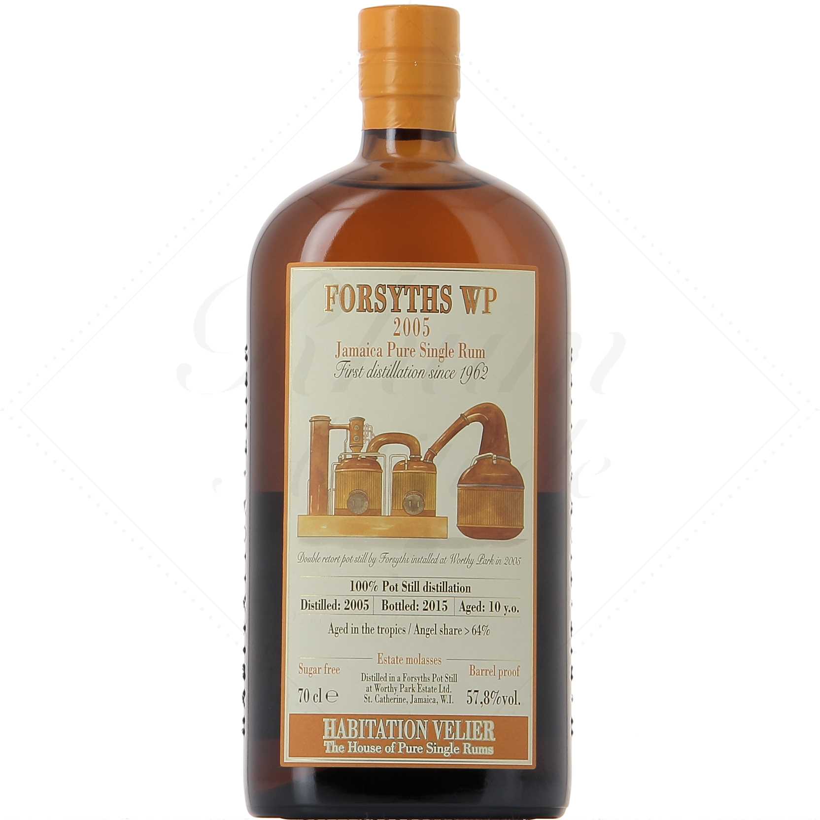 Habitation Velier Forsyths WP 2005 57,8° a été distillé en 2005 au sein de Worthy Park, en Jamaïque. Worthy Park est la plus vieille distillerie de Jamaïque encore en fonctionnement (première distillation en 1670 !). Après une fermeture de 50 ans, elle a rouvert ses portes (et ses alambics) en 2005 : il s’agit donc du premier millésime depuis la réouverture.