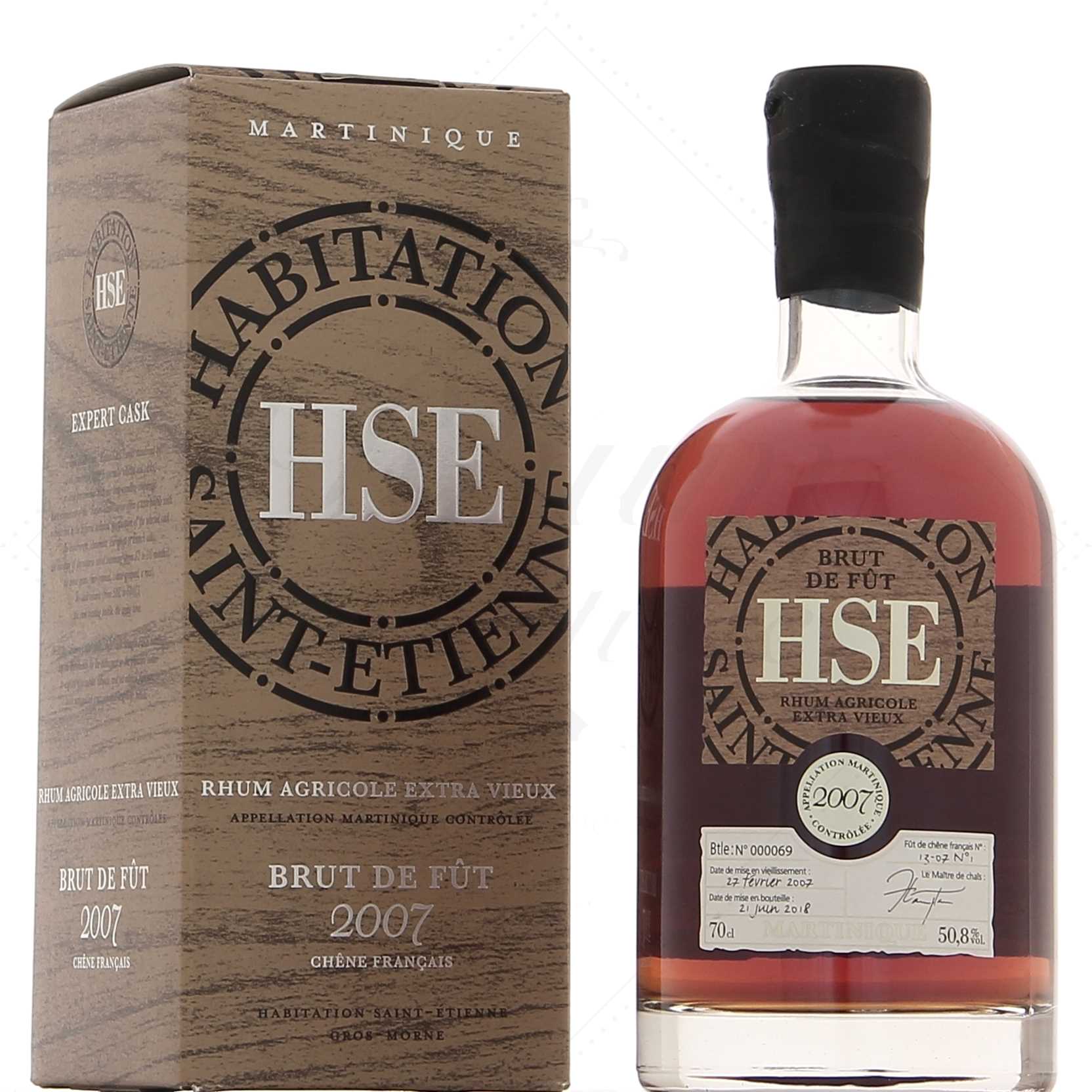 Ce brut de fût réalisé par la distillerie martiniquaise HSE, distillé en 2007 et mis en bouteille en 2018 a vieilli dans un fût de chêne français rigoureusement sélectionné.