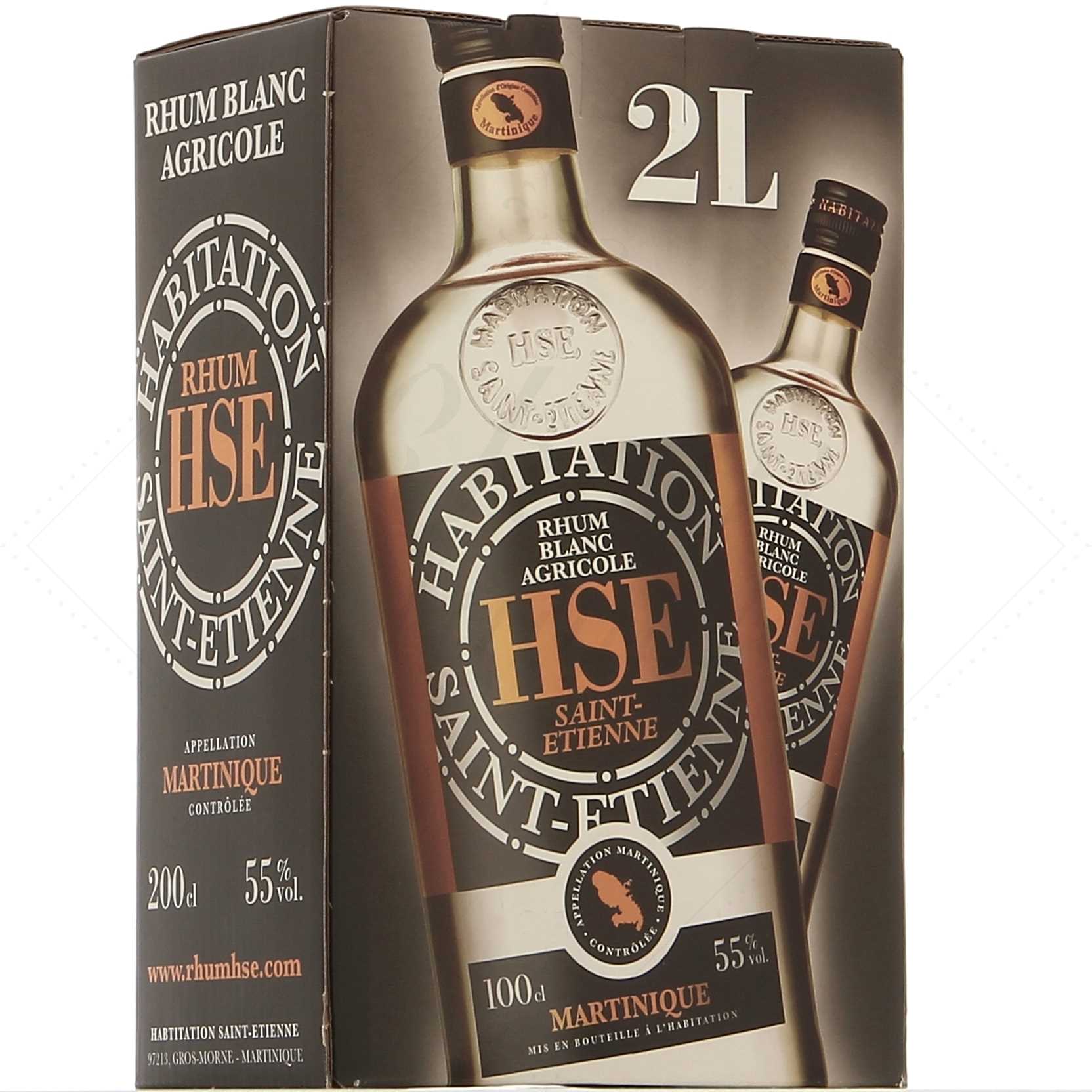 Ce rhum blanc HSE réduit à 55% est ici présenté dans un format cubi 200 cl.