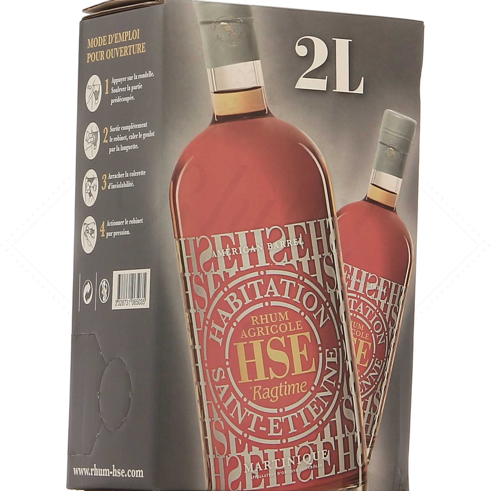 Ce rhum agricole HSE vieilli en fûts de chêne américain de 200 litres est ici présenté dans un cubi de 2 litres.