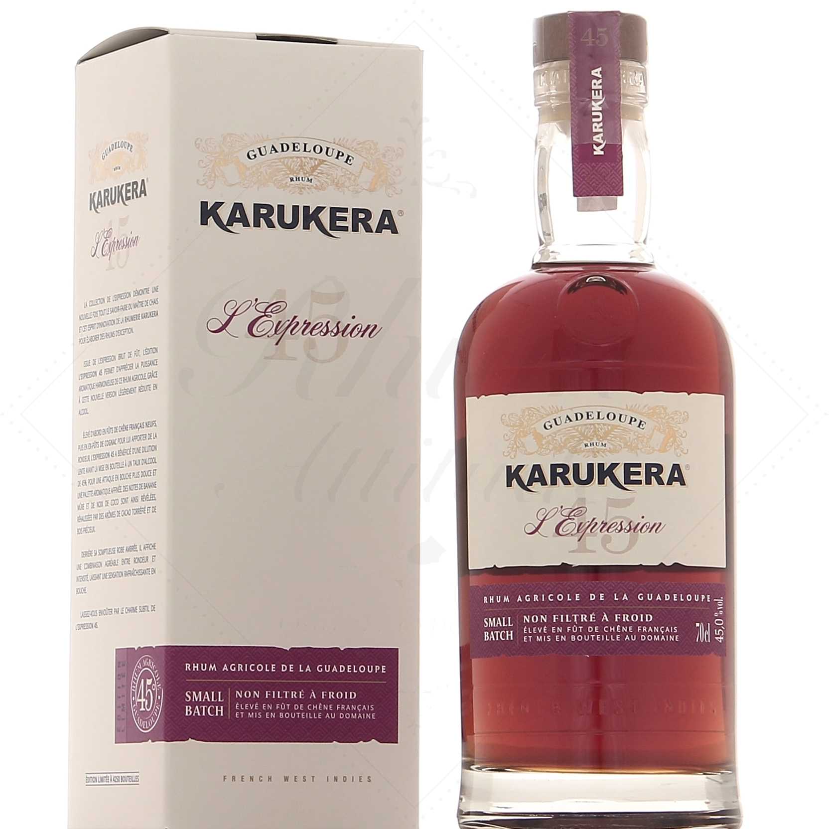 Karukera L’Expression est un rhum agricole de Guadeloupe, élaboré sur le Domaine du Marquisat de Sainte Marie. Cette petite série (small batch) de rhum de pur jus de canne a été distillée en juillet 2019. Elle a été placée en fût de chêne français neuf le 13 août 2019, puis a été transférée en ex-fût de cognac le 15 avril 2020. Soutiré le 16 octobre 2020, ce rhum ambré a ensuite bénéficié d’une lente réduction. L’embouteillage a finalement eu lieu le 12 novembre 2020, soit près de 15 mois après l’enfûtage. Il n’a pas été filtré à froid.