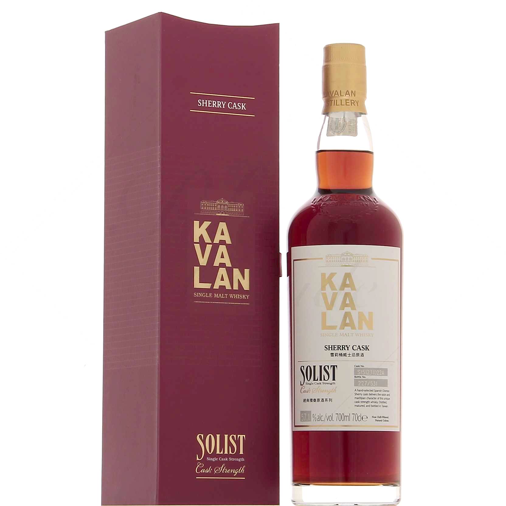 Vous retrouverez une note de dégustation sur l’embouteillage Kavalan Sherry Cask fût S081205021.