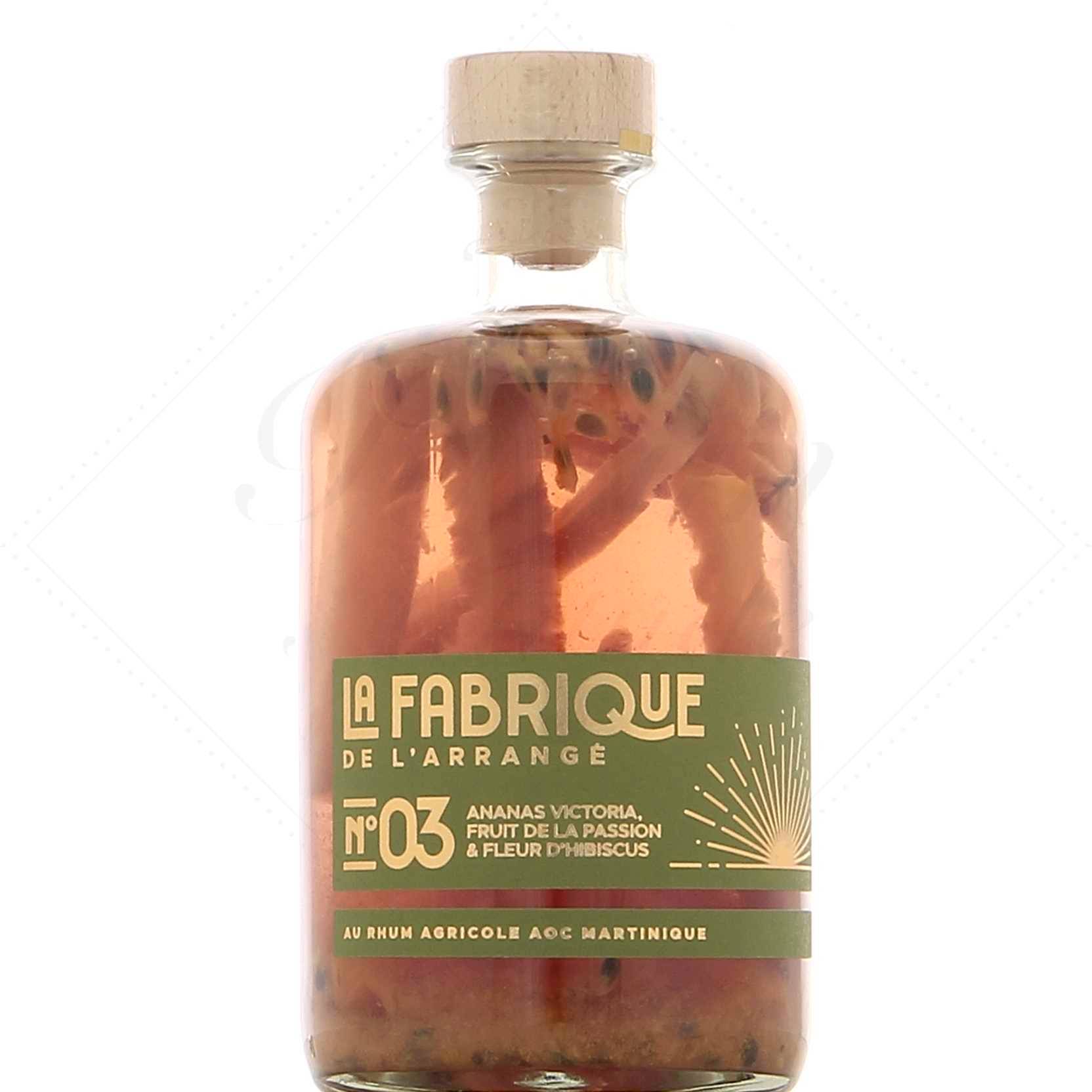 La Fabrique de l’Arrangé N°03 est une préparation originale réalisée avec deux des fruits exotiques les plus appréciés : l’ananas Victoria et le fruit de la passion. Elle est exaltée par une infusion de fleurs d’hibiscus.