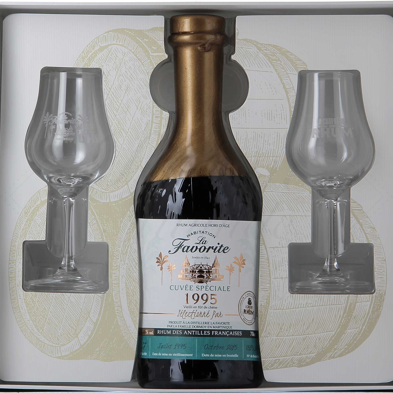 La confrérie du rhum est un groupe facebook bien connu des amateurs de rhum français. Les administrateurs de cette communauté, tous passionnés de rhum bien entendu, ont sélectionné avec le maître de chais de la distillerie La Favorite 4 fûts particulièrement intéressants et se suffisant à eux-mêmes. Le rhum a été distillé et placé en fût de chêne en 1995, puis sorti du fût et mis en bouteille en 2015 : le rhum y a donc séjourné pendant 20 ans.