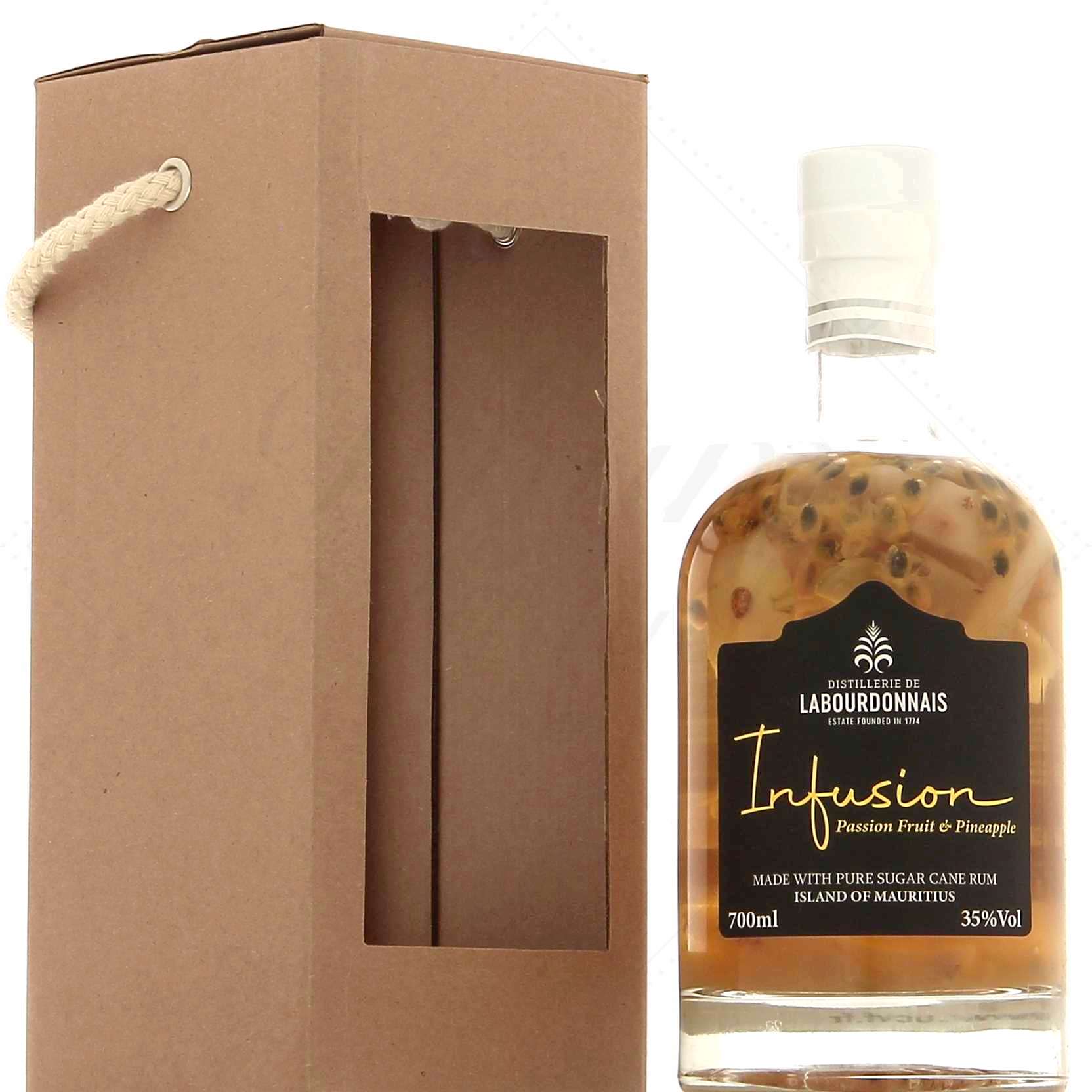 Labourdonnais Infusion Passion-Ananas est un rhum arrangé produit artisanalement sur l’île Maurice. Située à Mapou, cette distillerie utilise du jus de canne frais pour la réalisation de ses rhums.