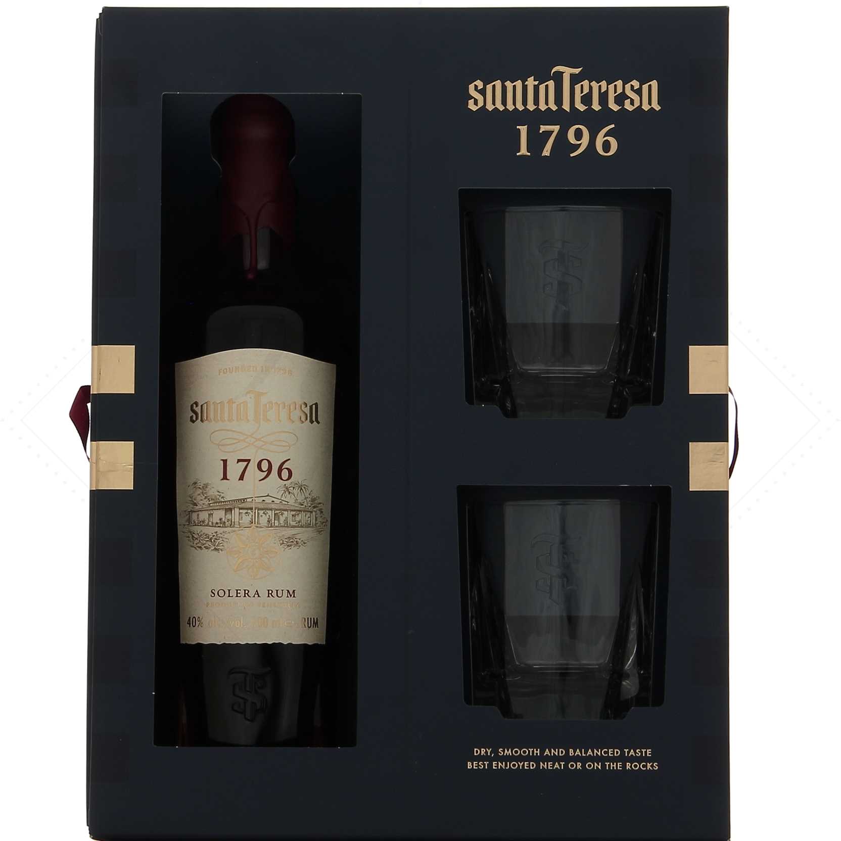 Santa Teresa 1796 est ici présenté dans un beau coffret avec 2 verres sérigraphiés. Un beau cadeau pour un amateur de ce rhum vénézuélien élevé en solera !
