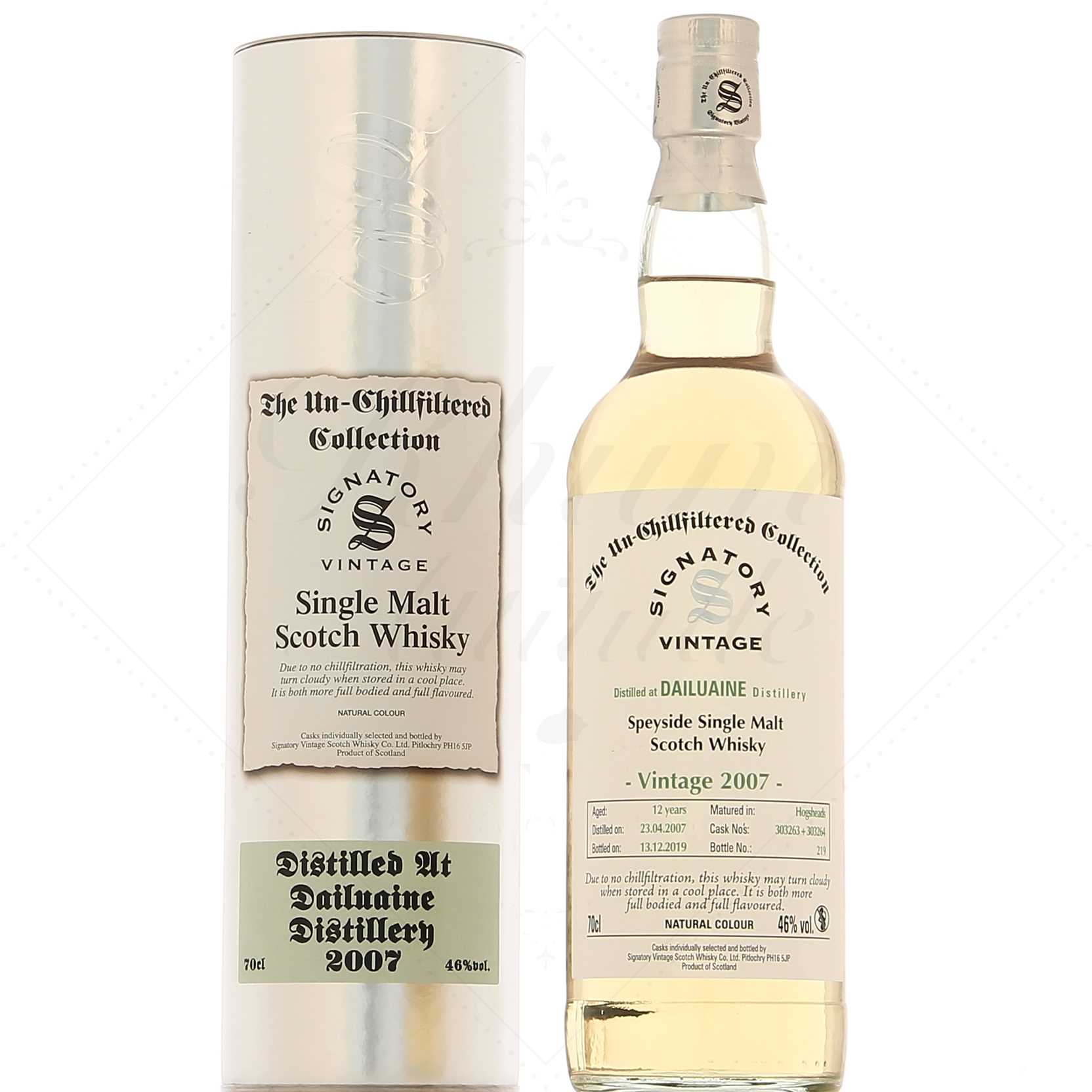 Signatory Dailuaine 2007 Unchillfiltered est un whisky single malt de la région du Speyside, en Écosse. De sa distillerie fondée en 1851, rares sont les single malts à atterrir sur nos étagères. En effet, 98 % de sa production sont avant tout destinés aux blends comme Johnnie Walker. C’est l’embouteilleur Signatory Vintage qui nous propose cette édition exclusive, faisant partie de sa Unchillfiltered collection (sans filtration à froid).