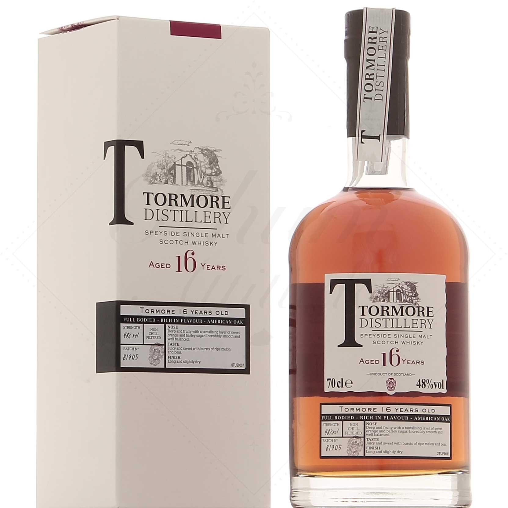 Tormore 16 ans est un whisky single malt d’Écosse, et plus précisément de la région du Speyside. C’est sur les hauteurs du pays que se situe la distillerie Tormore (« Torra Mhoir” signifiant “La grande colline” en gaélique). Alors que le plus gros de sa production entre dans des assemblages de scotch, voici un single malt rare et original.
