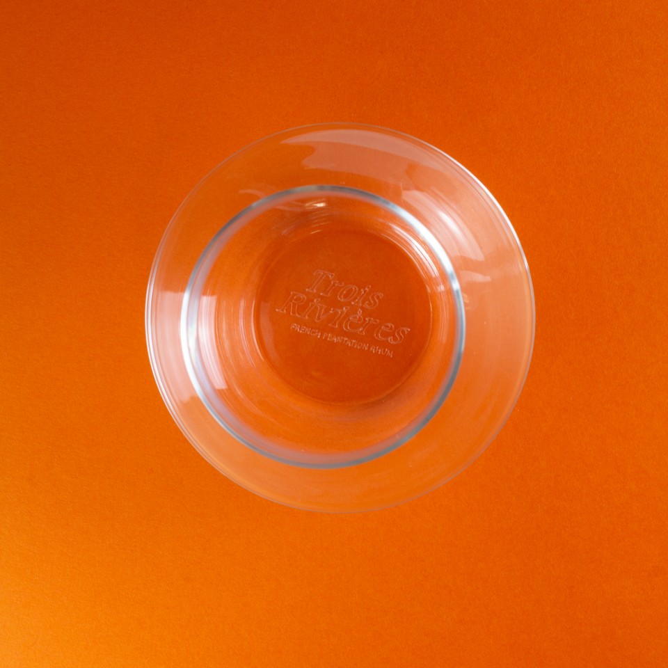 Le logo “Trois Rivières” est discrètement gravé au fond du verre (voir photo sur fond orange).