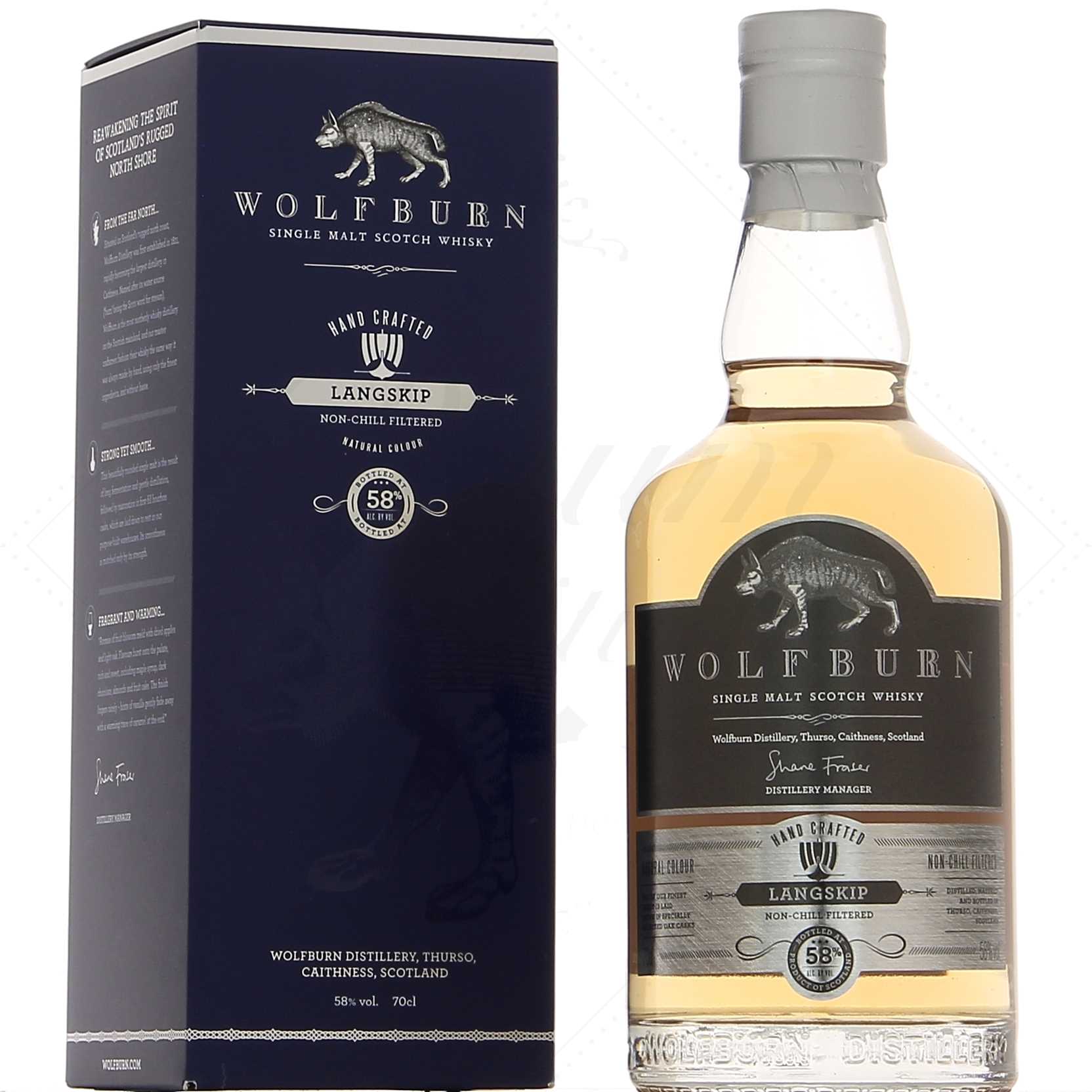 Entièrement vieilli en fûts de bourbon de premier remplissage et embouteillé sans réduction et sans filtration à froid, Wolfburn Langskip Batch Strength montre la fougue dont peut faire preuve la distillerie Wolfburn.
